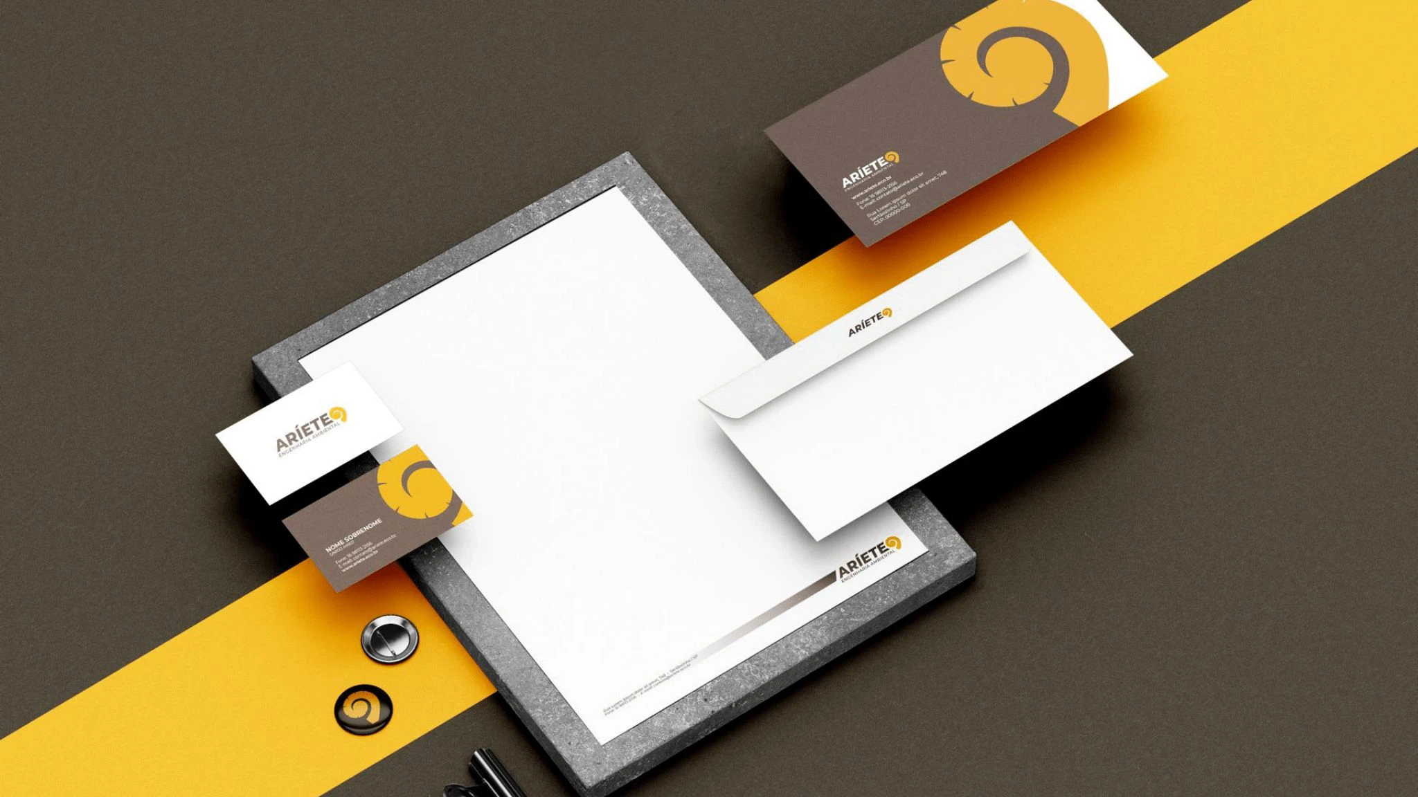 O desafio neste projeto foi criar uma identidade que relembre o Golpe de Aríete, passando força e segurança aliada à sustentabilidade e meio ambiente nos materiais.
