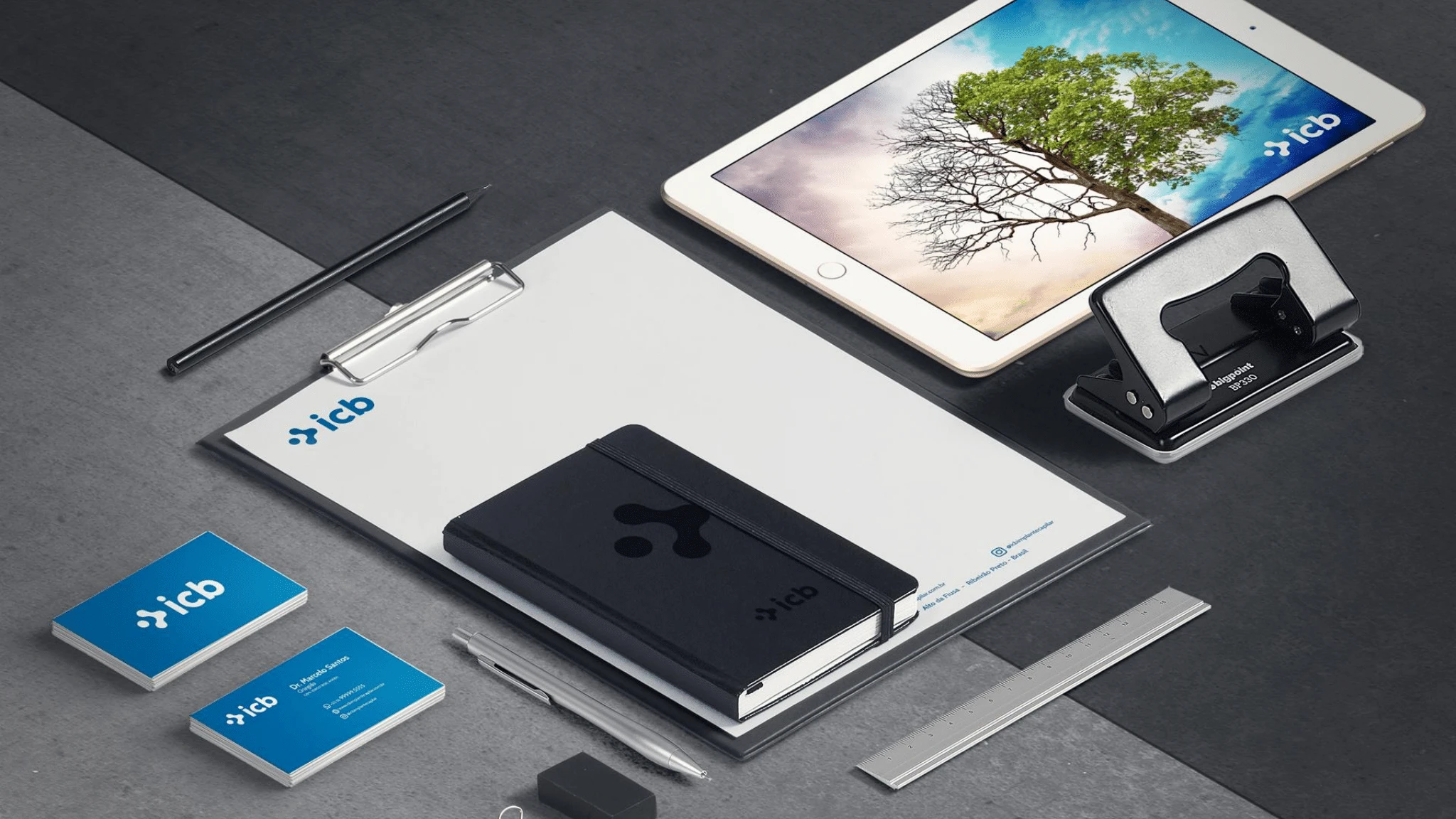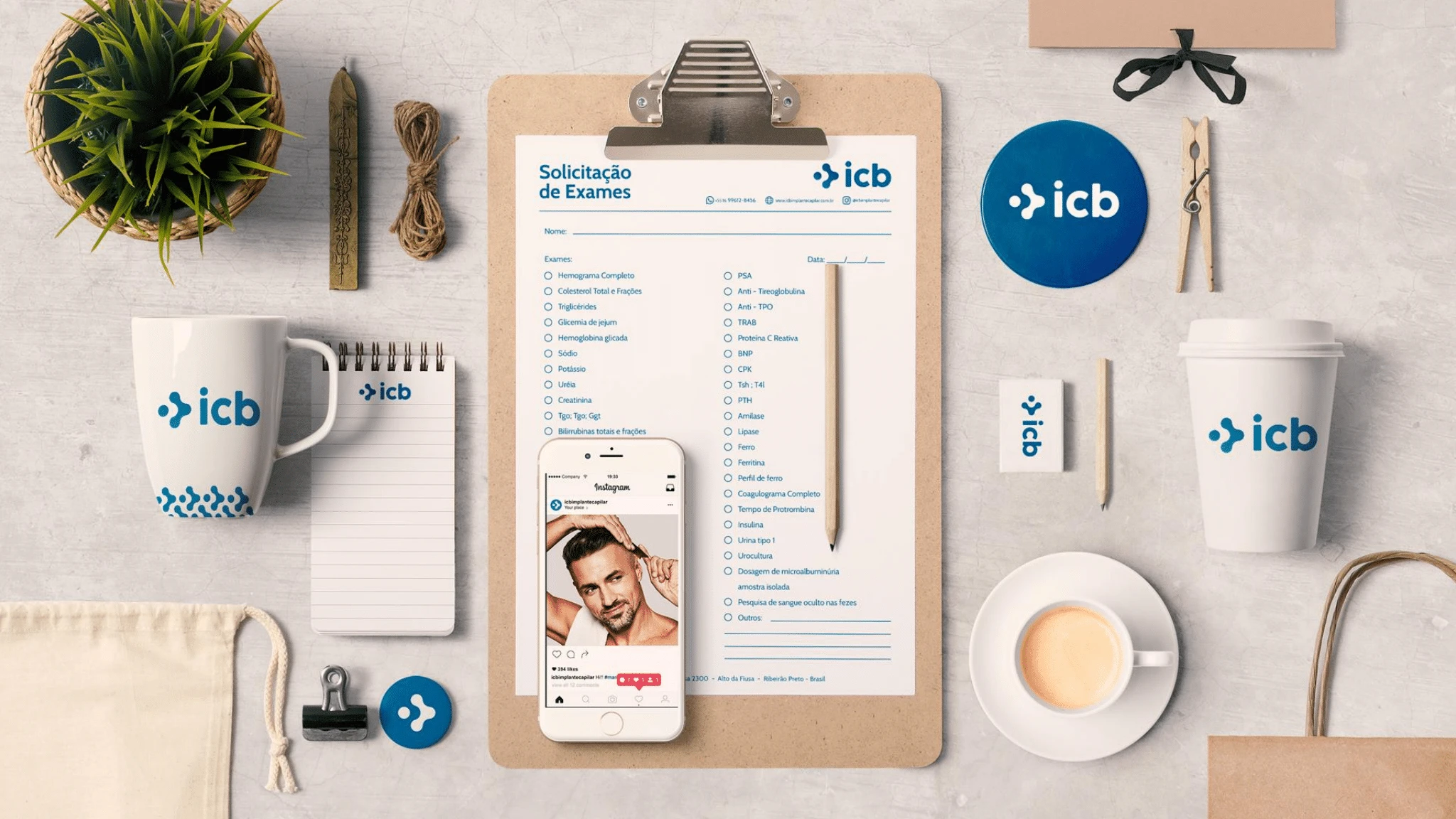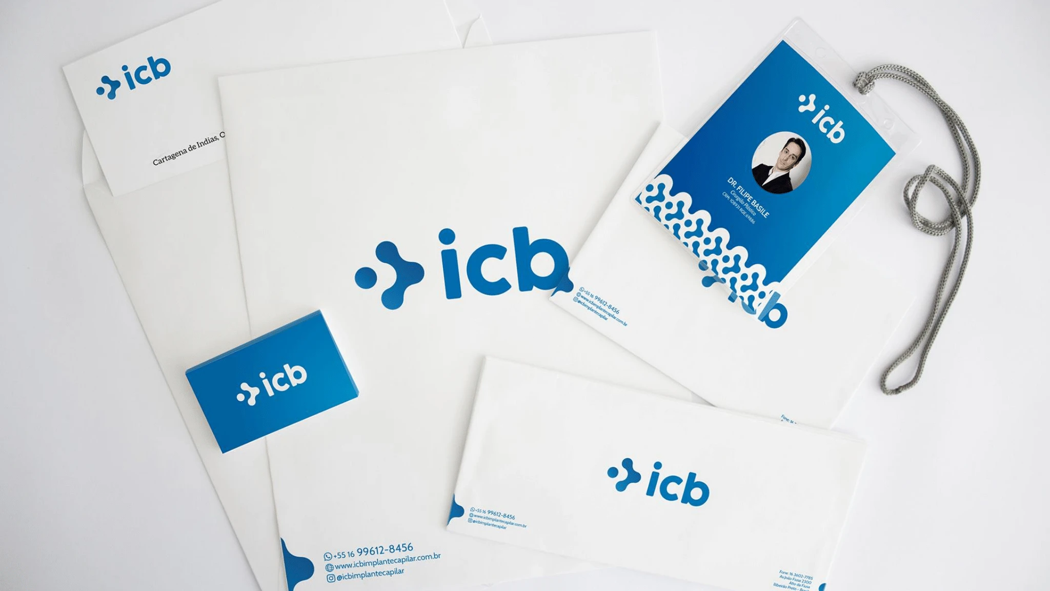 Neste projeto o objetivo foi incorporar detalhes do transplante capilar na identidade e demonstrar a seriedade, qualidade e força da icb dentro do setor.