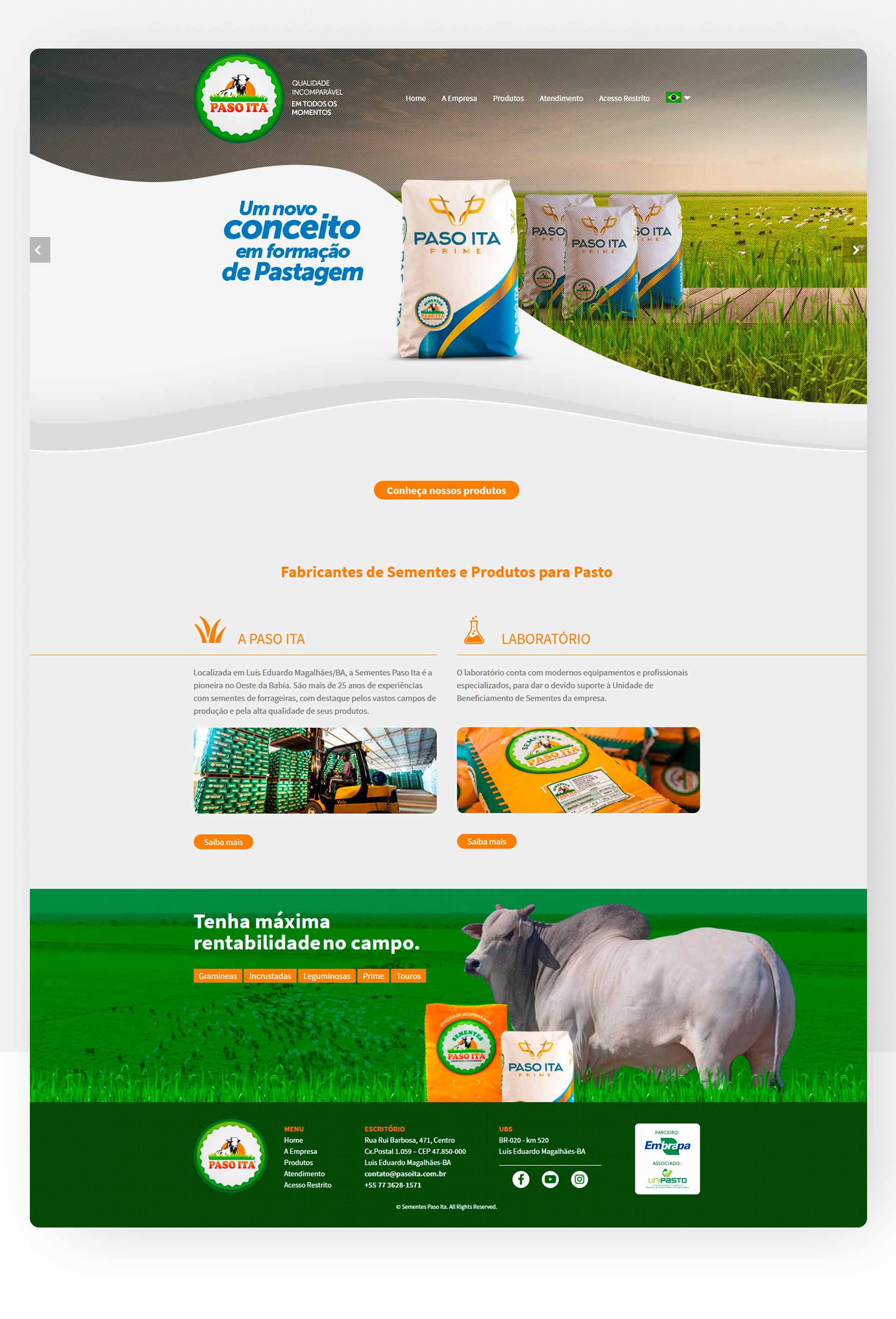 A Sementes Paso Ita trabalha há alguns anos com a RGB e nossas expectativas sempre são superadas quando desenvolvemos algum projeto juntos. Já repaginamos o site da empresa duas vezes com a RGB e o retorno é sempre muito positivo. Equipe extremamente profissional e competente.