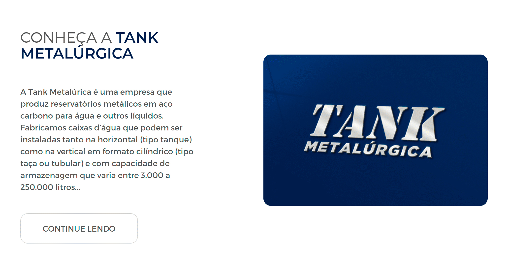 A Tank Metalúrica é uma empresa que produz reservatórios metálicos em aço carbono para água e outros líquidos.
