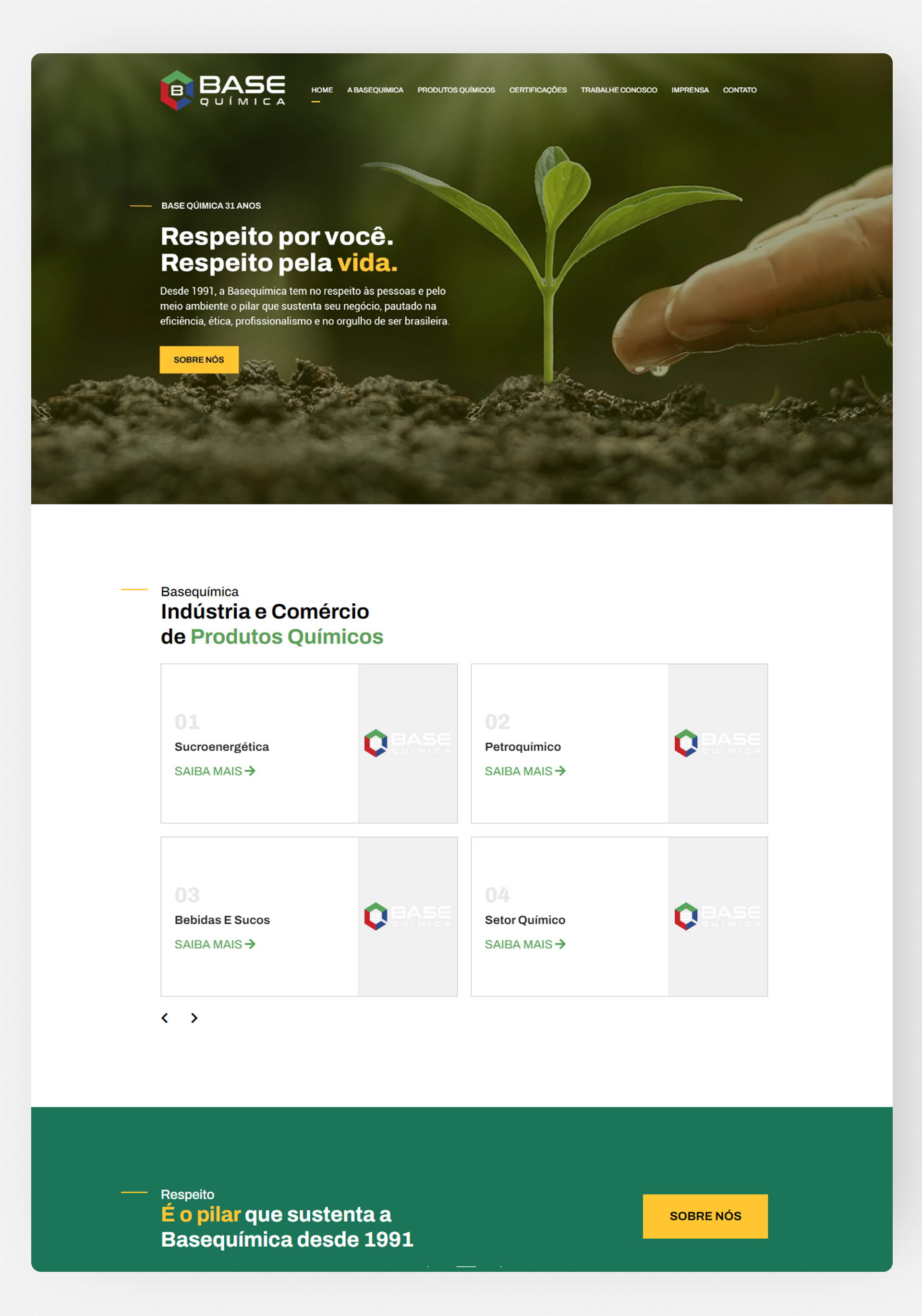A Basequímica é uma empresa que tem o respeito às pessoas e ao meio ambiente, tendo ambos como pilares de sustentação ao seu negócio.